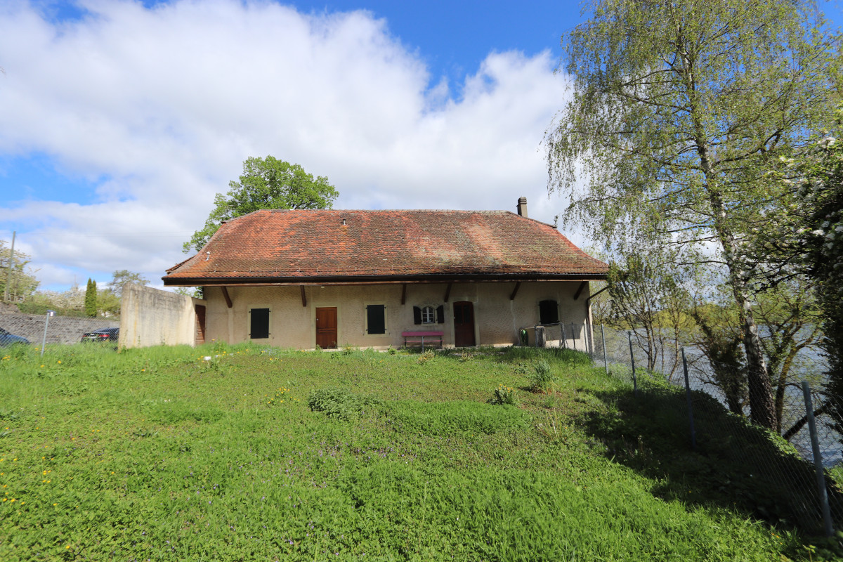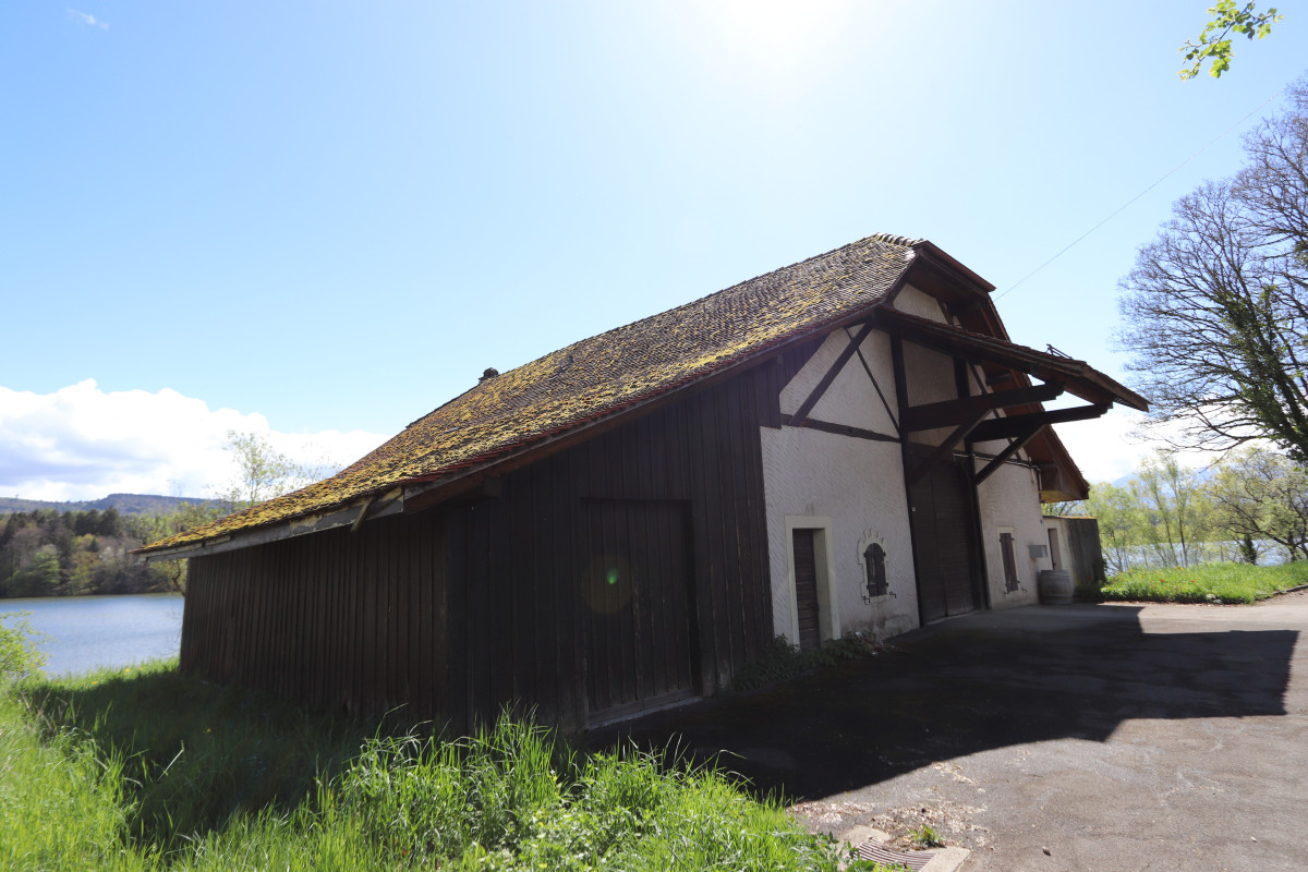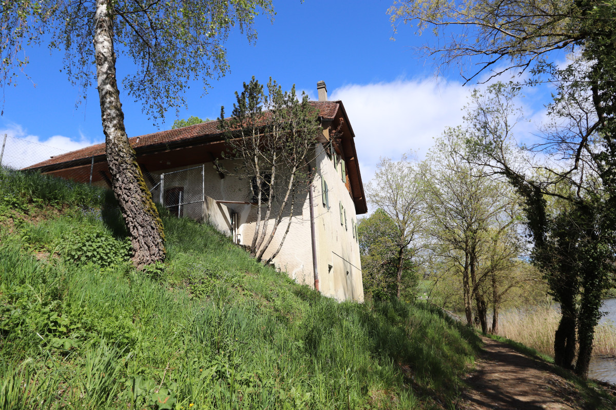 Ferme d’habitation de 7.5 pièces, construction de 1750, entièrement à rénover, en pleine nature, dans une situation exceptionnelle au bord du lac de Bret.