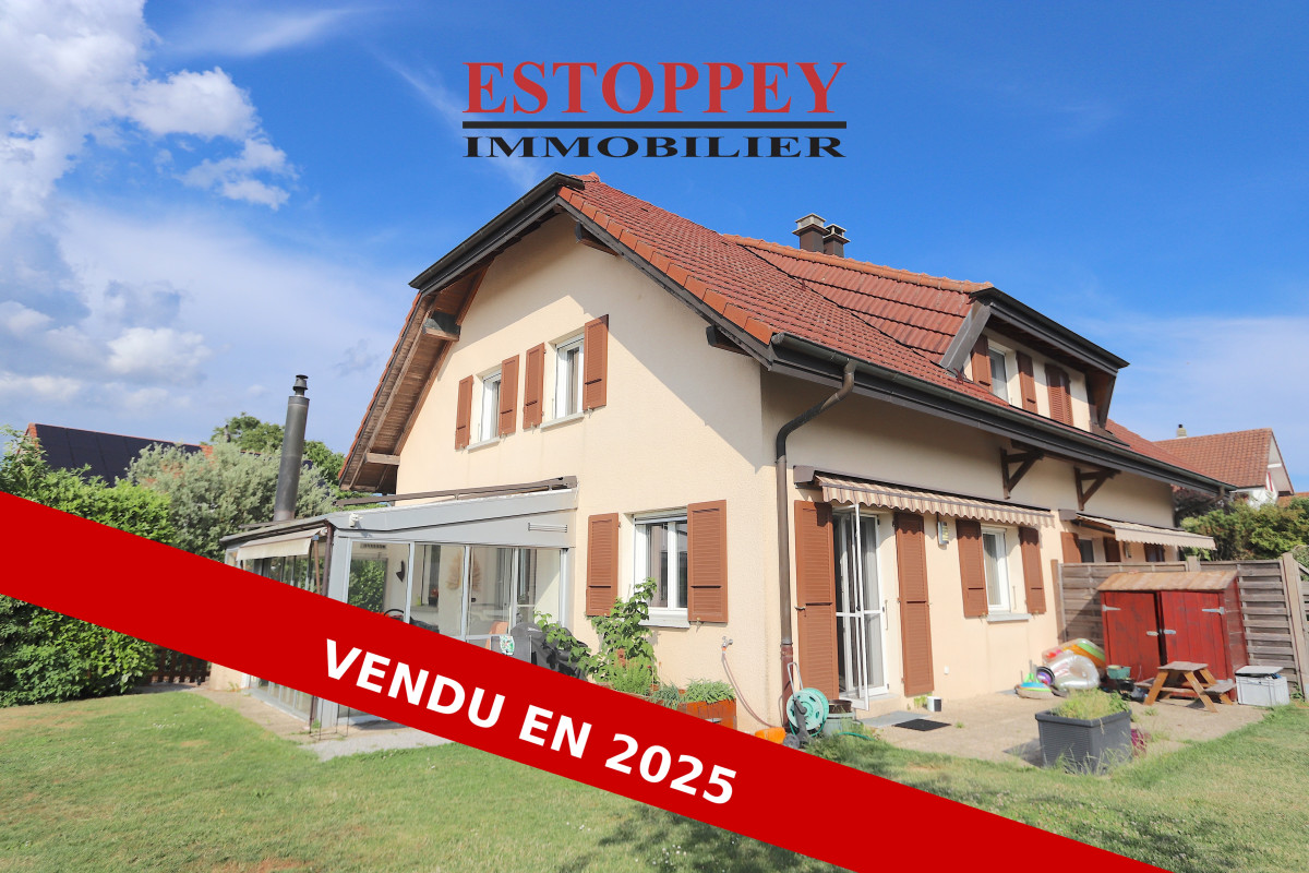Cette charmante villa mitoyenne propose une surface habitable de 140 m2. Construite en 1995, cette villa a été rénovée entre 2019 et 2025. Ce bien offre de beaux volumes à vivre ainsi que de nombreuses possibilités d’aménagements. Parfaitement adaptée à la vie quotidienne d’une famille, elle se trouve dans un quartier résidentiel très calme, sans vis-à-vis, avec une magnifique vue sur la campagne et le Jura.
